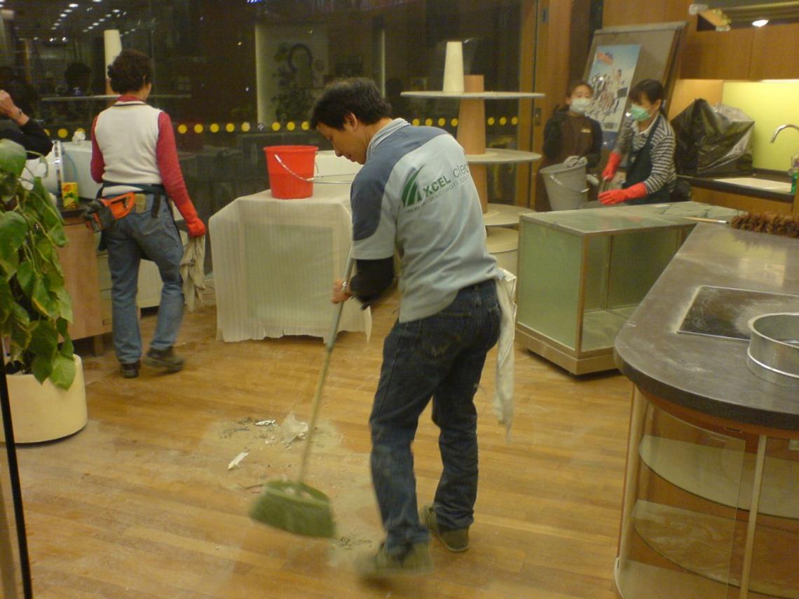 - 地板起漬清洗及落蠟、使用專業設備物料